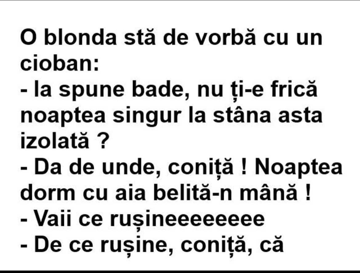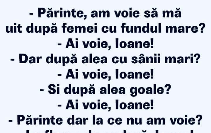 Măi Bulă, cum a fost azi la şcoală, ai luat vreo notă? îl întreabă maică-sa. – Da, zice Bulă, nota trei. Şi a zis doamna învăţătoare să vii să vorbeşti cu ea! – Iarăşi?!… Se duce maică-sa la învăţătoare: – Doamnă, de ce-i puneţi copilului meu numai note de trei?… E chiar atât de prost?! … Read more