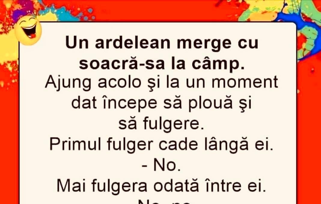 Un ardelean cu soacra-sa la camp. Ajung acolo si la un moment dat incepe sa ploua…primul fulger