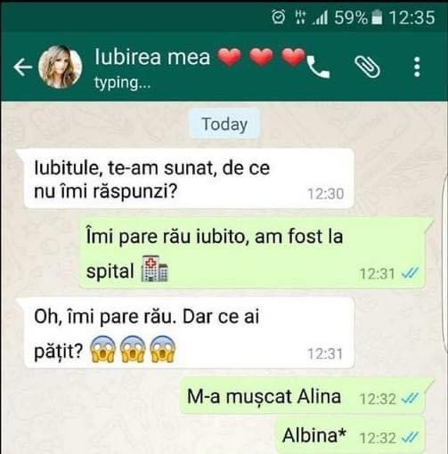 Iubitule, te-am sunat, de ce nu îmi răspunzi?Îmi pare rău, iubito. Am fost la spital.