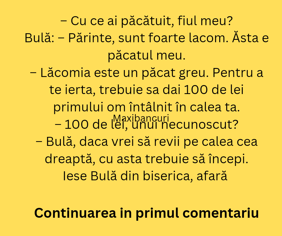 Bulă: – Părinte, sunt foarte lacom. Ăsta e păcatul meu.