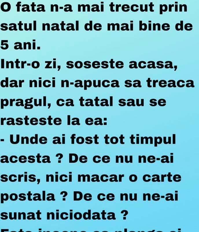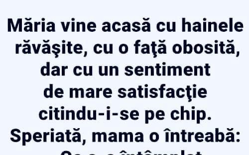Maria vine acasa cu hainele ravasite cu o fata obosita dar cu un sentiment de mare satisfactie..Speriata mama o intreaba:
