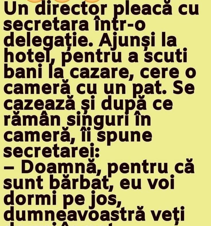 1.Un bărbat însurat îşi vizitează amanta care îi propune:– Gheorghiţă, iubitule, îţi stă foarte bine cu barba, dar tare aş vrea să te razi ca să-ţi pot admira frumosul chip în voie– Nu pot, draga mea, nevastă-mea adoră barba asta!– Te rog, te rog! îl imploră ea. – Ţi-am zis că nu pot, soţia mea … Read more