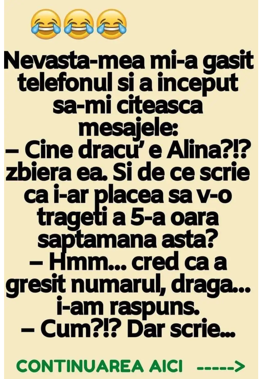 – Cine dracu’ e Alina?!? zbiera ea. Si de ce scrie ca i-ar placea sa v-o trageti a 5-a oara saptamana asta?
