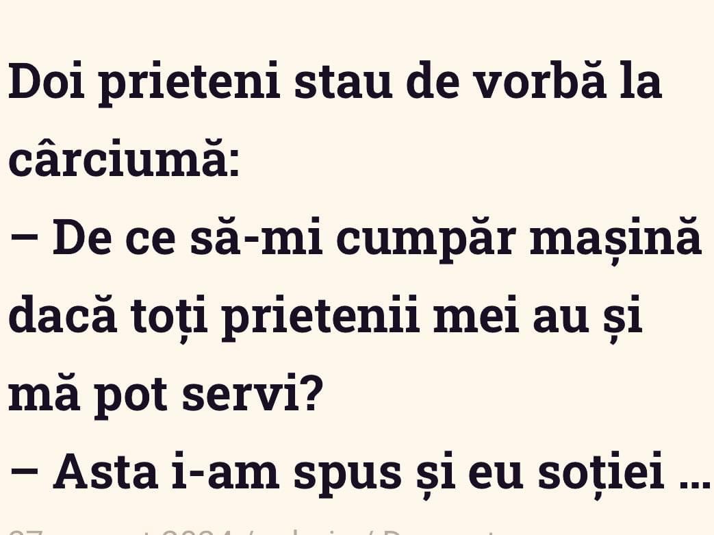 – De ce să-mi cumpăr maşină dacă toţi prietenii mei au şi mă pot servi?