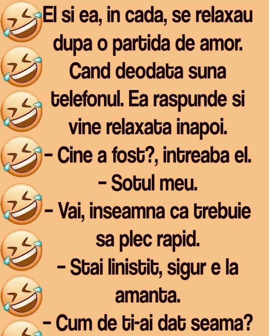– Pai, mi-a zis ca mai intarzie pentru ca are mult de lucru cu … tine.