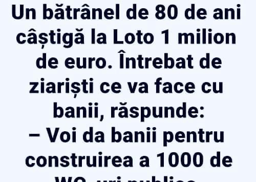 – E ok, nu-ți face probleme!, zice femeia. Dacă nu murea al tău, ar fi murit al meu peste cinci minute!