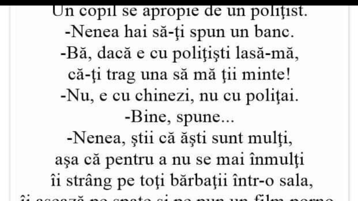 – Aseară, când stăteam cu el și cu 2 fete într-un bar și eram deja la a opta bere și al treilea pachet de țigări, a intrat nevastă-sa și l-a împușcat!